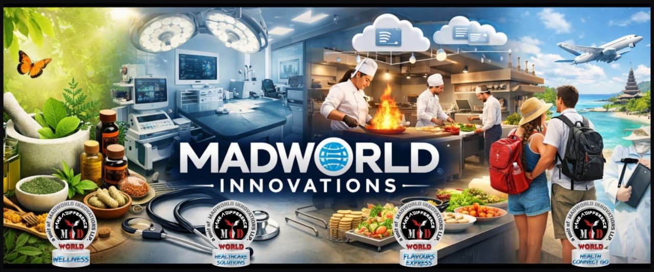 MADWORLD INNOVATIONS LLP is a future-focused healthcare and wellness group committed to redefining how the world experiences healing. We integrate traditional wellness sciences, modern medical infrastructure, advanced technology, and global healthcare connectivity into one unified ecosystem.